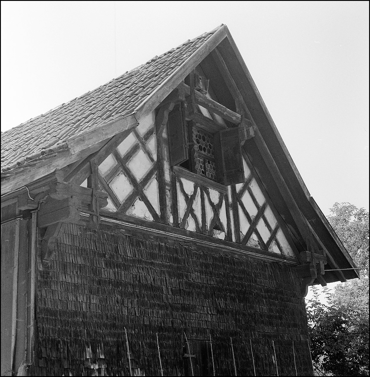 Sogenannte Zehntscheune. Jahreszahl 1731. Mit älteren Teilen. Zweigeschossiger Fachwerkbau mit Hocheingang, der ehemals mit dem Wohnhaus über einen Hochtunnel verbunden war. Hohlziegeldach. Bemerkenswert reiche Zierformen: lebhafte Riegelmusterung, profilierte Flugsparrendreiecke, bemalte Fensterläden, Türgerichte mit reicher Profilierung, altes Beschläg, Butzenfenster usw. Im Innern fast vollständig erhaltenes Interieur mit bemalten Teilen. Dazu eine reichhaltige Sammlung von alten Acker- und Haushaltgeräten. Eignet sich für ein Ortsmuseum. Sollte unbedingt restauriert werden. Dokumentation: Bauernhausforschung im Kanton Thurgau. Grundlagenkartei. Verfasst von Erika Tanner, ca. 1986-1998 (Deponiert im Amt für Denkmalpflege); mit weiterführenden Angaben. - Brandkataster Staatsarchiv TG. - Rüegger, Peter. Bauernhäuser der Gemeinde Egnach. Winterthur 1977/2006, S. 13. - Die Einheitsgemeinde Egnach. unsere Heimat. Hg. Gemeinderat Egnach. Egnach 1987, S. 2. - Michel, Alfred. Aus der Geschichte des Egnach. Hg. Schweizerische Bodensee-Zeitung. Romanshorn 1973, S. 38. |