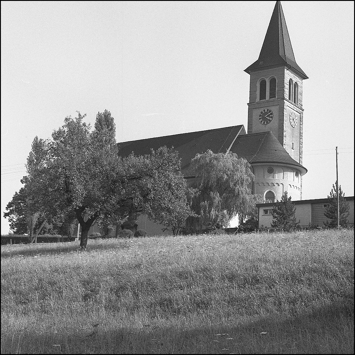 Katholische Pfarrkirche. Dominiert den Winzelnberg. 1922 Grundsteinlegung. Einweihung 1925. Architekt Albert Rimli aus Frauenfeld. Altäre und Stationsbildwerke von Holzbildhauer Stufleser (? siehe Nachtrag).