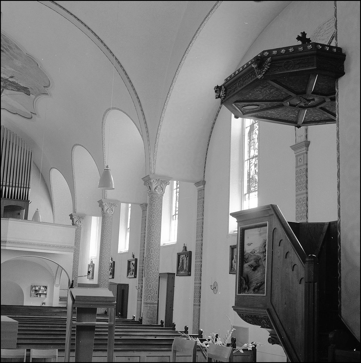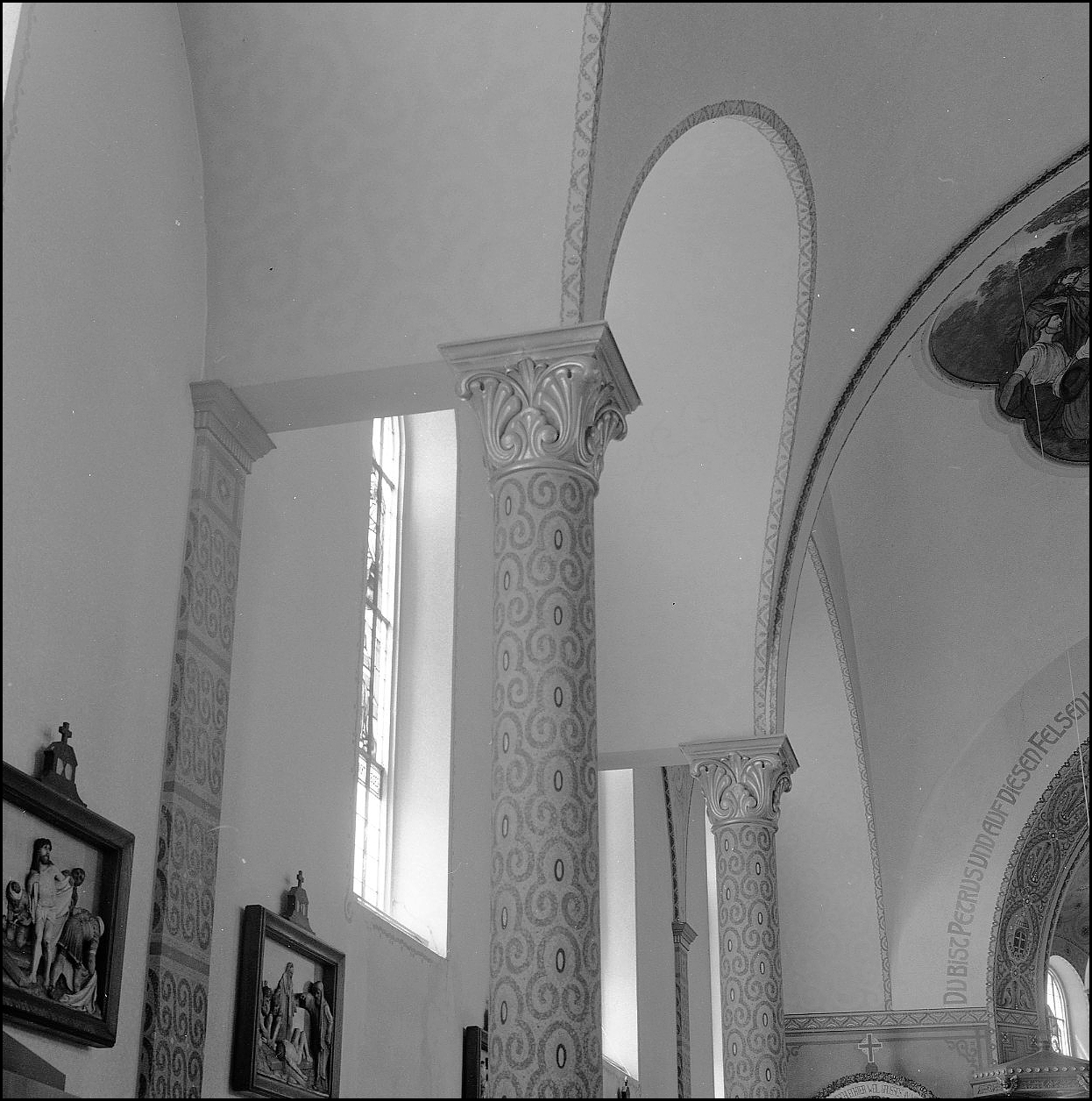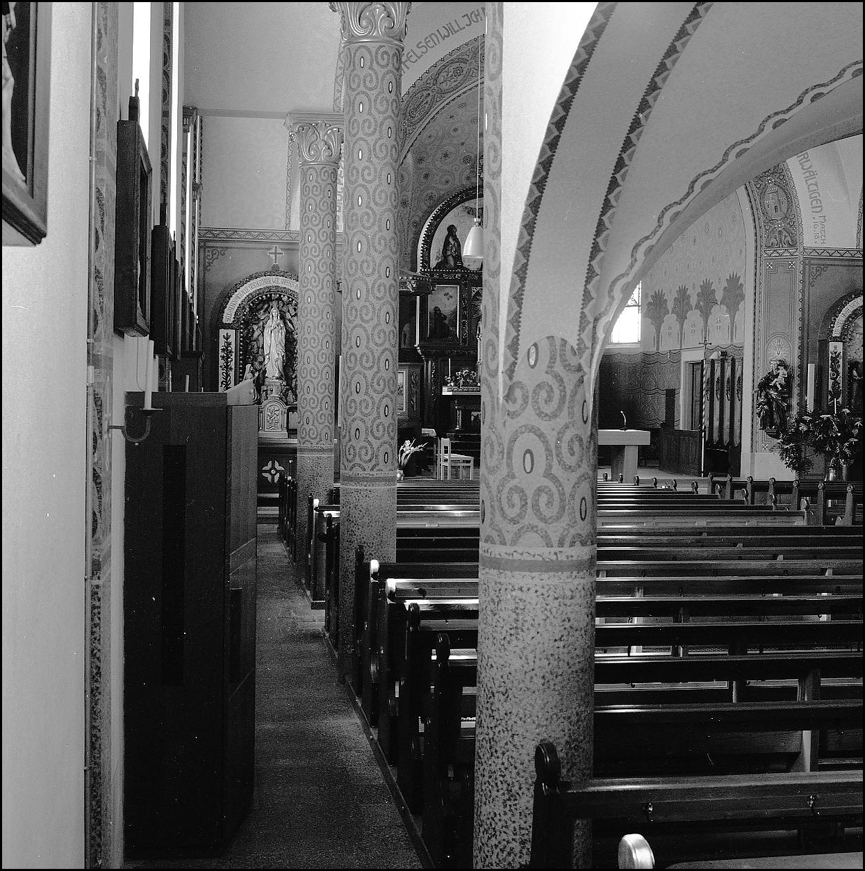 Im Jahre 1923 erhielt das Kircheninnere seinen künstlerischen Schmuck. Der Plattenbelag aus Kunststein wurde an Haug in Staad bei Rorschach vergeben. Die Gossauer Firma Bubenhofer und Eisele, spezialisiert auf Vergoldung, Kirchenmalerei und Stuckaturen, erhielt die Gipserarbeit und dekorierte die Oberflächen, während ihr Mitarbeiter I. Bezak die beiden Deckengemälde ausführte. Hochaltar und Seitenaltäre sowie Kanzel und Kreuzwegstationen schuf Christian Mahlknecht in St. Ulrich-Gröden (Tirol), die farbigen Fenster stammen von Lütz und Elmpt aus Emmishofen (Budget-Bericht 1994).