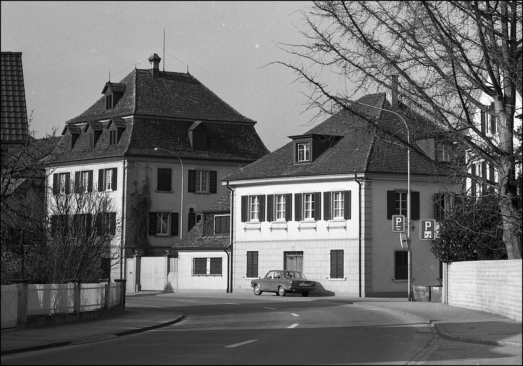 '1814/15 für Heinr. Wegmann anstelle eines Vorgängerbaus erstellt, 1823/25 von Oberst J. Melchior Schiegg (1785-1867) gekauft und wahrscheinlich ausgebaut. Der scharfgeschnittene würfelförmige Baukörper mit Mansarddach hat einen sparsamen klassizistischen Bauschmuck mit Sockelquaderung und Bogenportal. Das Treppenhaus ist angeblich von 'zierlicher ausführung'; auch soll es im 2. Stock eine Stuckdecke im Directoire-Stil geben.' (Kunstdenkmäler). Dominierender, dreistöckiger Baukörper mit ausgebautem Mansardwalmdach. Zweigeschossige Anordnung der Dachausbauten: drei Giebellukarnen entsprechend den drei Fensterachsen, darüber eine einzelne Giebellukarne in der Mittelachse. Reich geliederte Fassade mit klassizistischem Schmuck: Markante Quaderung des Sockelgeschosses, abgeschlossen durch Gurtgesimse. Verkröpfte Ecklisenen mit girlandenbehangenen Kapitellen unter der starken Hohlkehle des Dachansatzes. Auszeichnung der Mittelachse durch steingerahmtes Rundbogenportal. Harmonie der Fassaden zur Zeit gestört durch sprossenlose Fenster im 1. Obergeschoss. Zum Haupthaus gehören diverses Nebenbauten: Seestrasse 66 mit Anbau, verbunden durch die ostseitige Gartenmauer mit Hofeinfahrt (Pfosten mit Quaderung; ehemalige Bekrönung?). Turmartiger Gartenpavillon am See (siehe Seestrasse 68+). Typus des städtischen, besseren Bürgerhauses, wie es um die Jahrhundertwende des 18./19. Jahrhunderts vor den Mauern der Stadt, neben oder innerhalb gutgepflegter, meist stilisierter Gärten errichtet worden ist. Bedeutendes Baudenkmal von 1814/15. Dominiert die östliche Ortseinfahrt von Steckborn. Die ehemalige Nutzungseinheit von Herrschaftshaus, Bedienstetenhaus, Garten und Gartenpavillon ist hier erhalten, ähnlich wie beim Haus 'Zur Ente' (Obertorstrasse 2,4,6 und Garten G1), mit welchem auch eine formale Verwandtschaft besteht. Dokumentation: Raimann, Alfons / Erni, Peter. Die Kunstdenkmäler des Kantons Thurgau. Band 6: Der Bezirk Steckborn. Bern 2001. - Steckborn. Hinweisinventar alter Bauten und Ortsbilder im Kanton Thurgau. Hg. Amt für Denkmalpflege. Frauenfeld 1975 (Kartei im Denkmalpflege-Archiv mit zusätzlichen Fotos). - Amt für Denkmalpflege, Budget-Berichte 2000, S. 95. Schmid, August. Das Bürgerhaus in der Schweiz, XIX. Band, Zürich 1928, Tafel 80. - Gutscher Daniel. Steckborn. Schweizerische Kunstführer. Hg. Gesellschaft für Schweizerische Kunstgeschichte. Basel 1977, S. 15. - Brandkataster Staatsarchiv TG. |