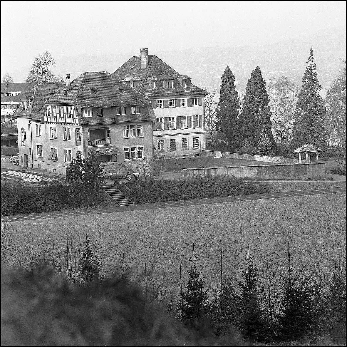 1772-74 erbaut durch Franz Anton Bagnato. Bauherr: Bankier Daniel Labhart aus Paris. (Labhart-Wappen über dem Gurtgesimse und im flachen Dachgiebel). Restauriert 1975.