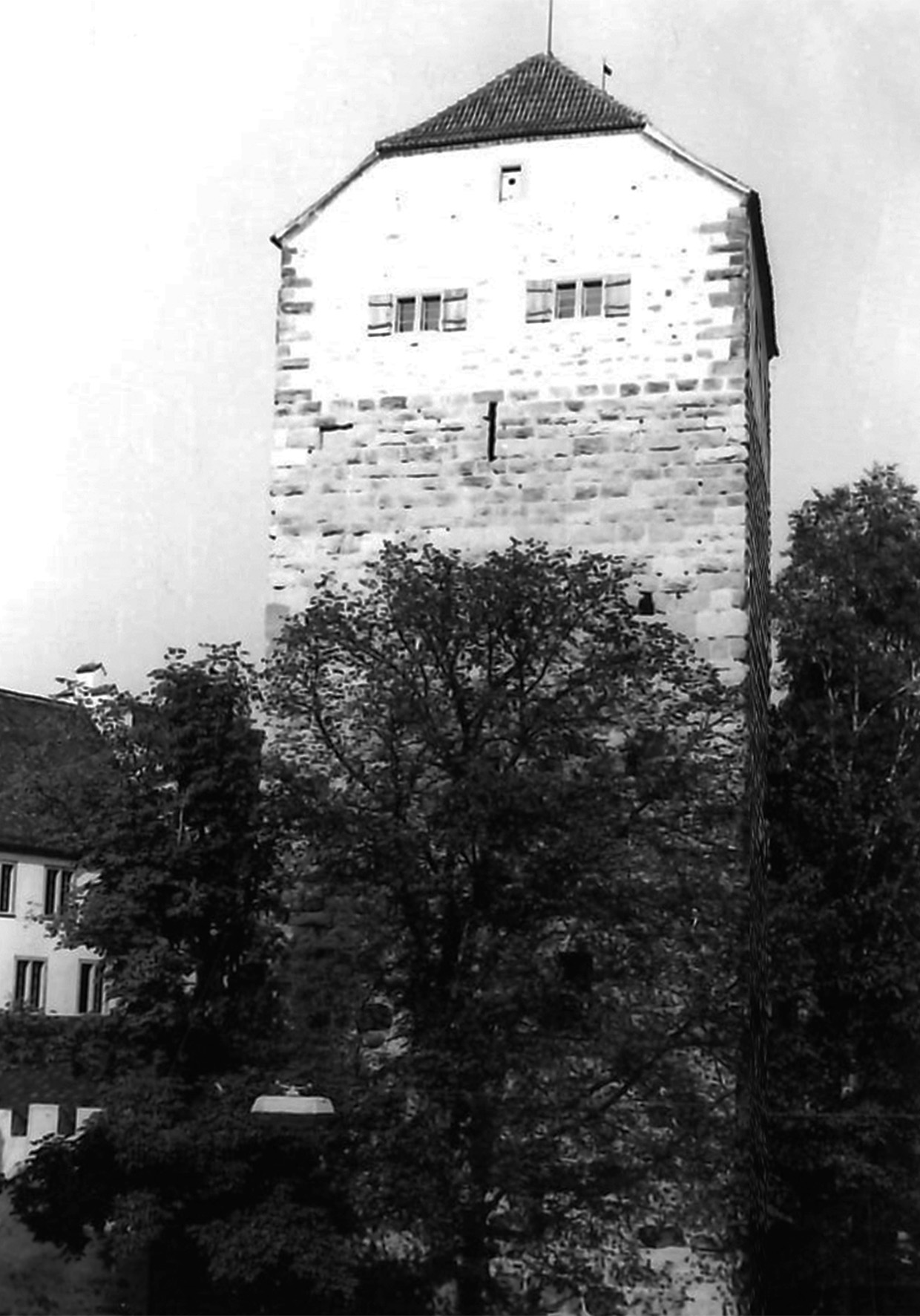 Auffallend schönes Quaderwerk, das z.T. Bossen mit Randschlag enthält. Die Mauern des unteren Bereichs haben eine Stärke von 3.20 Metern. Einige Spolien sind vermutlich römisch. Ältester Hocheingang auf der Stadtseite, ein zweiter gegen Osten. Von hier führt eine Treppe im Inneren der Südmauer zum dritten Stock. Reste zweier romanischer Kamine, wovon eines mit spätromanischen Würfelkapitellen. - Der Turm ist einbezogen in die Schlossanlage, 1515-20 durch Hugo von Hohenlandenberg erbaut (siehe Schloss 2-4). Die Aussenmauern der Nord- und der Westwand des Hinteren Schlosses stehen genau auf der Nordwestecke des spätrömischen Kastells. - Besonders wertvolles Baudenkmal, einer der seltenen Wehr- und Wohntürme der Ostschweiz. Er steht in einem ebenfalls besonders wertvollen Bauensemble, der herrschaftlichen Schlossanlage des Spätmittelalters. - Wahrzeichen von Arbon, in dominanter Lage am Schlossareal, zwischen der Kirche St. Martins und dem Eingang zur Altstadt. Der Turm markiert auch das ehemalige Stadttor.