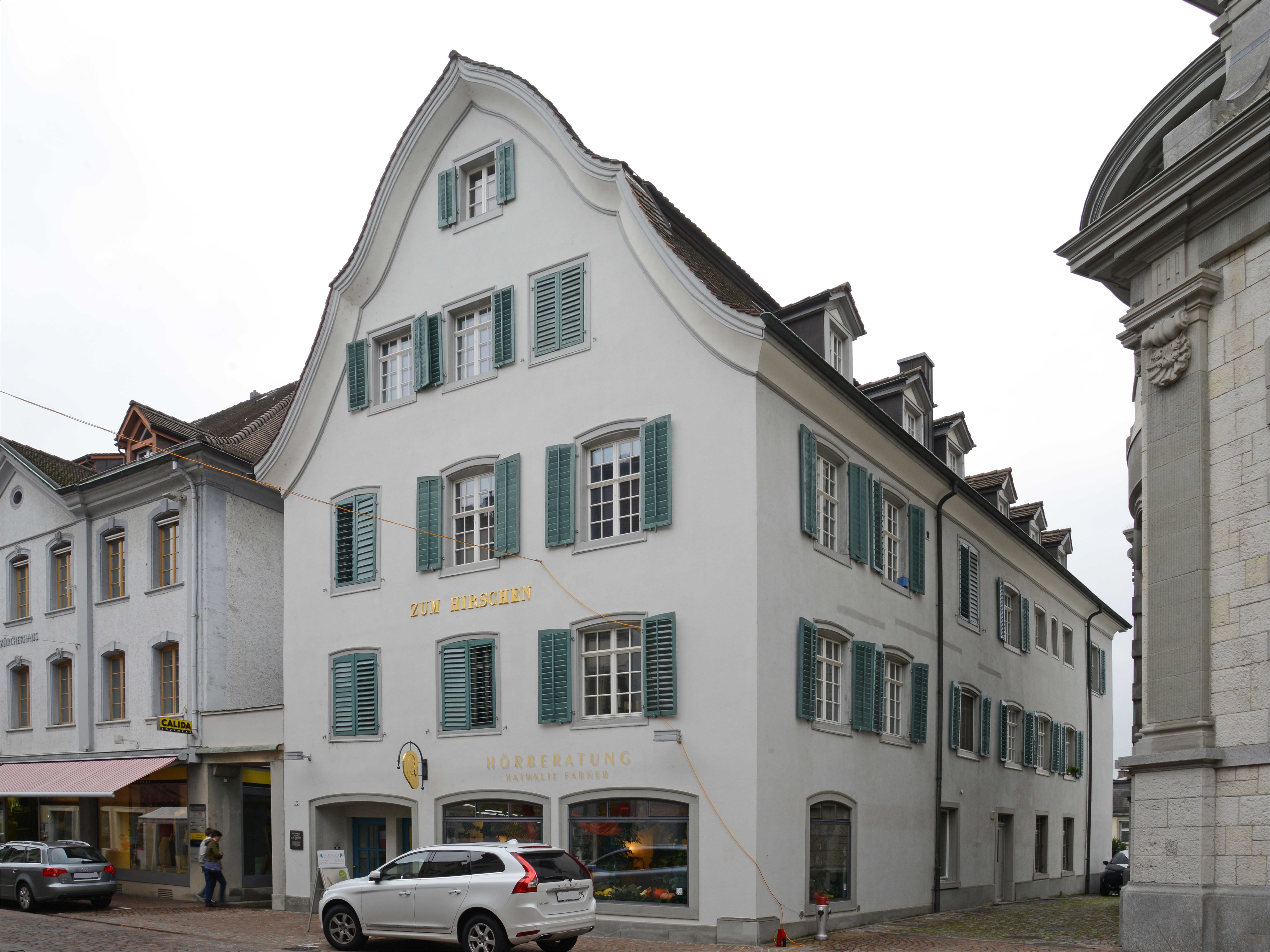 Einziger giebelständiger Bau in der Altstadt, mit doppelt geschwungener Hohlkehle. Fachwerk verputzt. Freistehend. Dokumentation: Amt für Denkmalpflege, Budget-Berichte 1997, S. 43. - Müller, Ernst (Hg.). Der Thurgau in alten Ansichten. Druckgraphiken von 1500 bis um 1880. Frauenfeld 1992. Nr. 366. - Das Bürgerhaus in der Schweiz, XIX. Band, Zürich 1928, Tafel 10. - Brandkataster Staatsarchiv TG. |